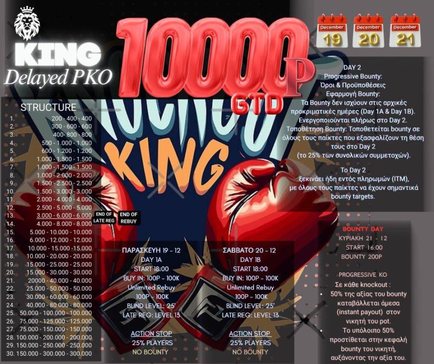 King: Στις 18:00 η Day 1a του Delayed PKO με 10.000p gtd