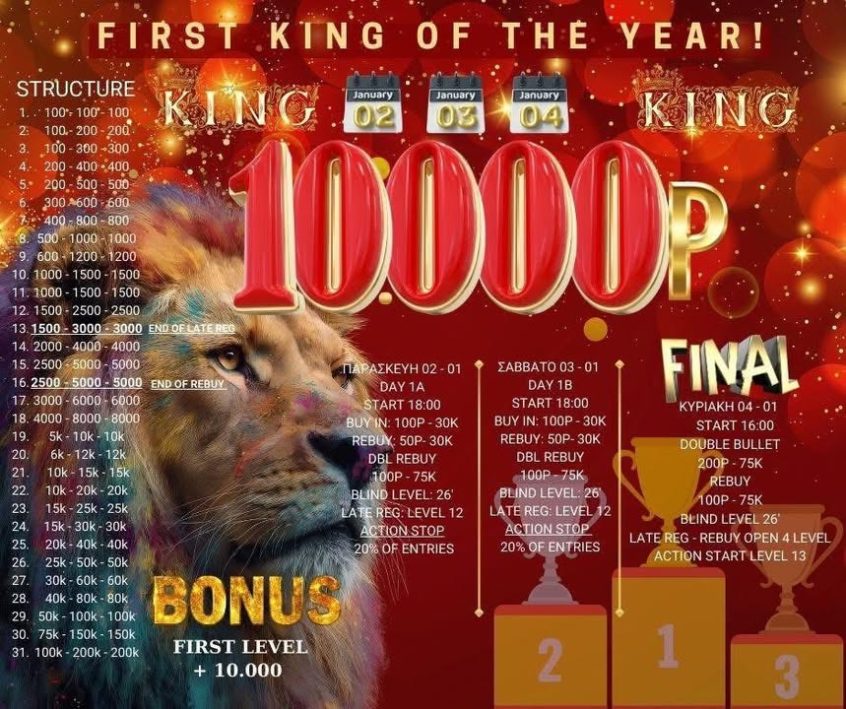 King: Στις 18:00 η Day 1a με 10.000p gtd