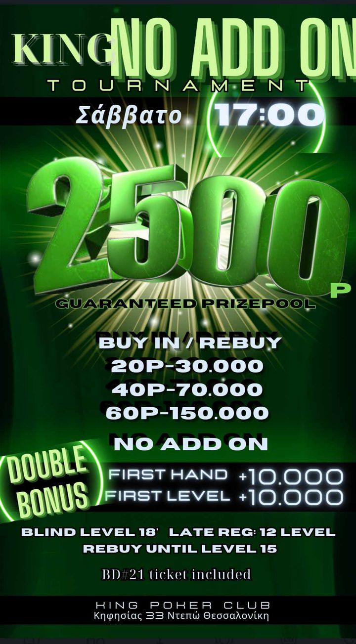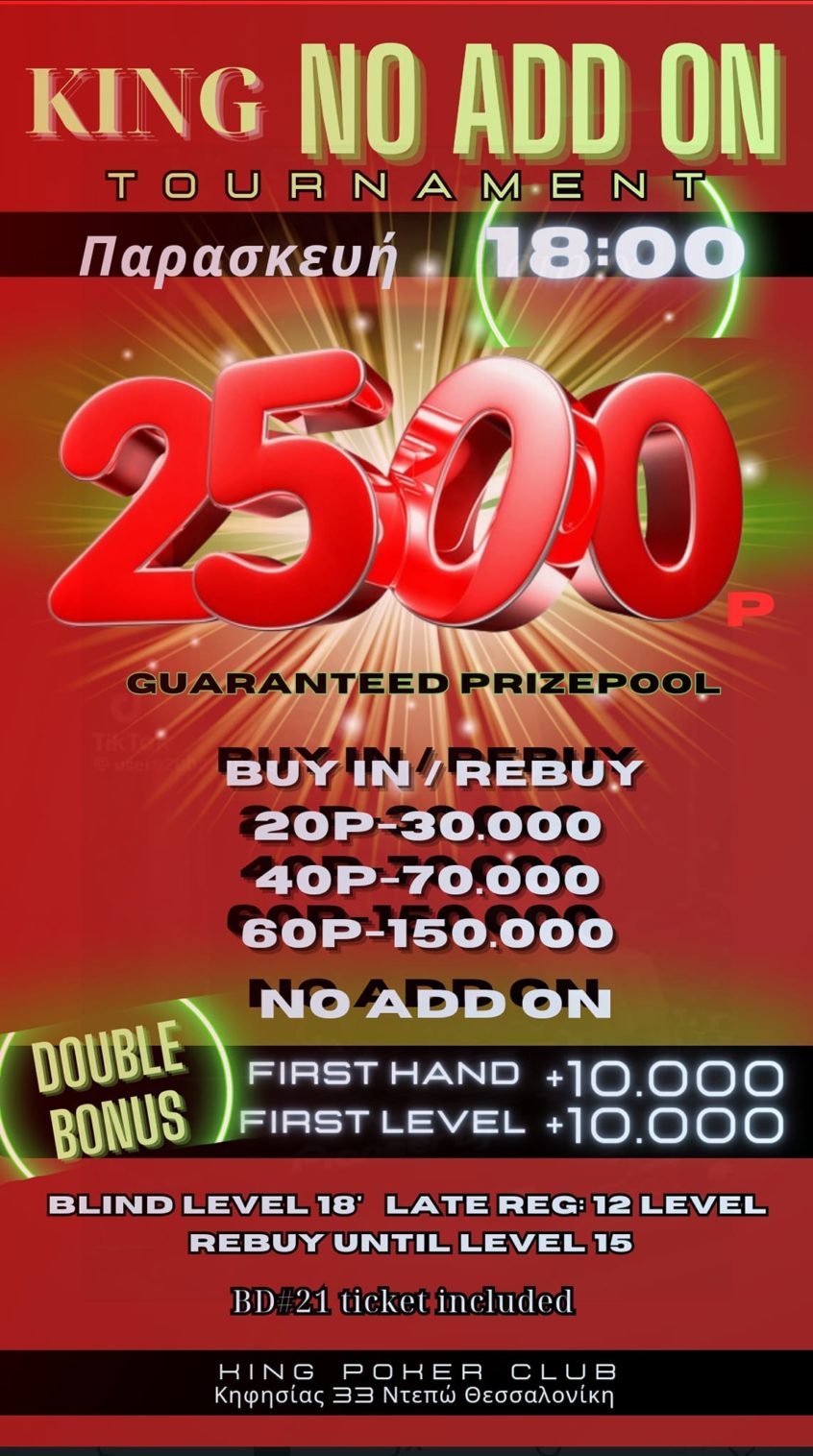 Κing: Heads-up deal χθες, No Addon με 2.500p gtd στις 17:00