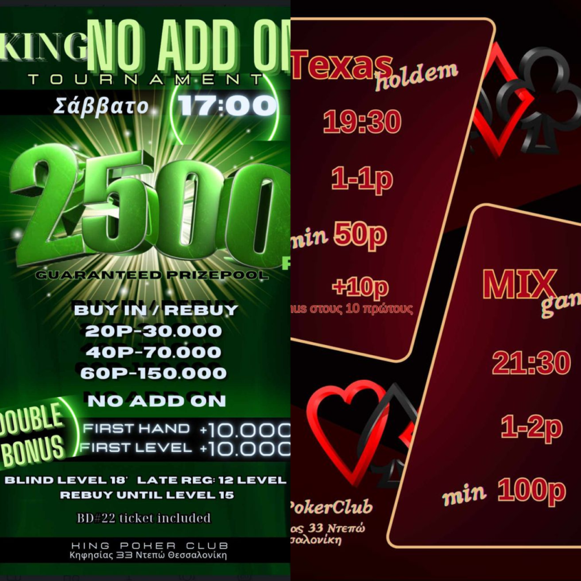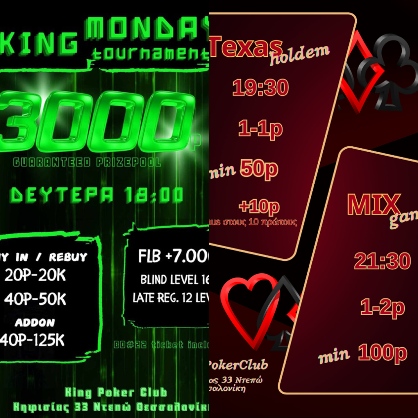 Κing: 3.000p gtd στις 18:00 + Texas/mix games