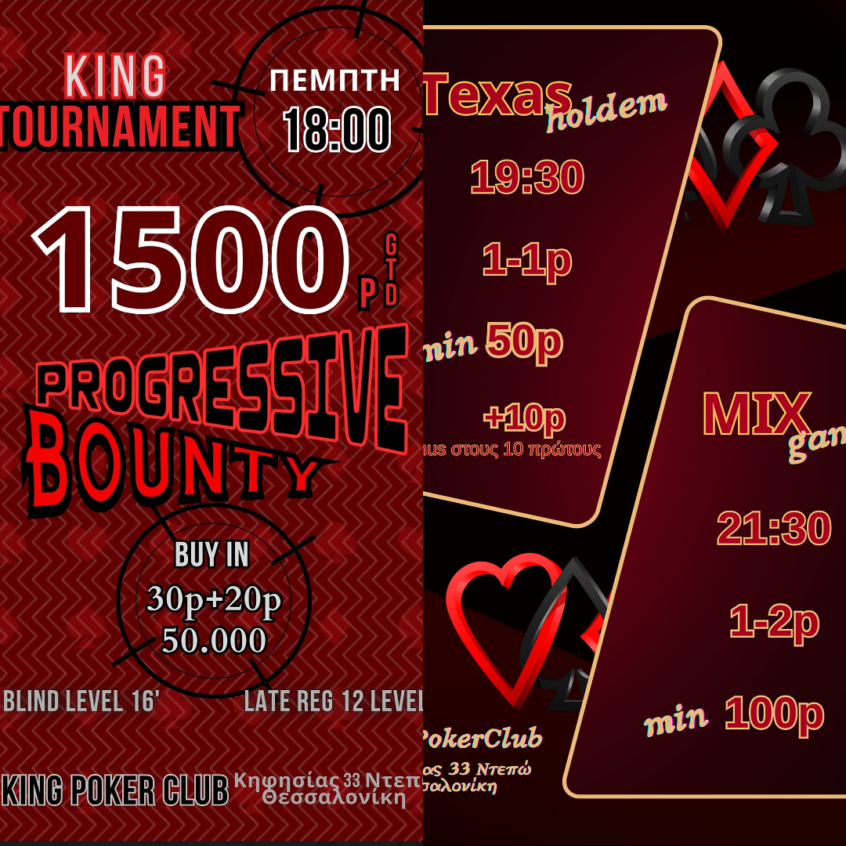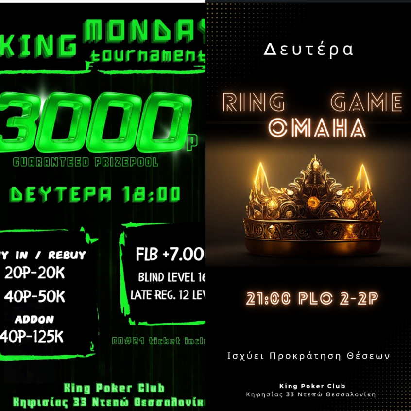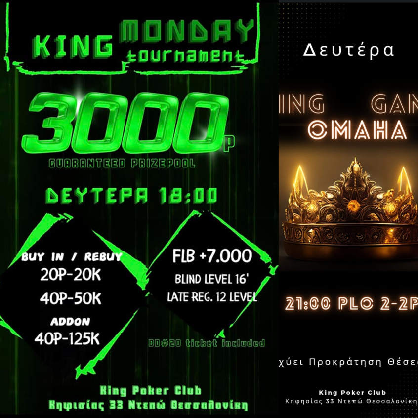 Κing: 3.000p gtd στις 18:00 και PLO games στις 21:00