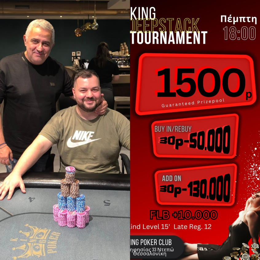 Κing: Heads-up deal χθες, No Addon με 1.500p gtd στις 18:00