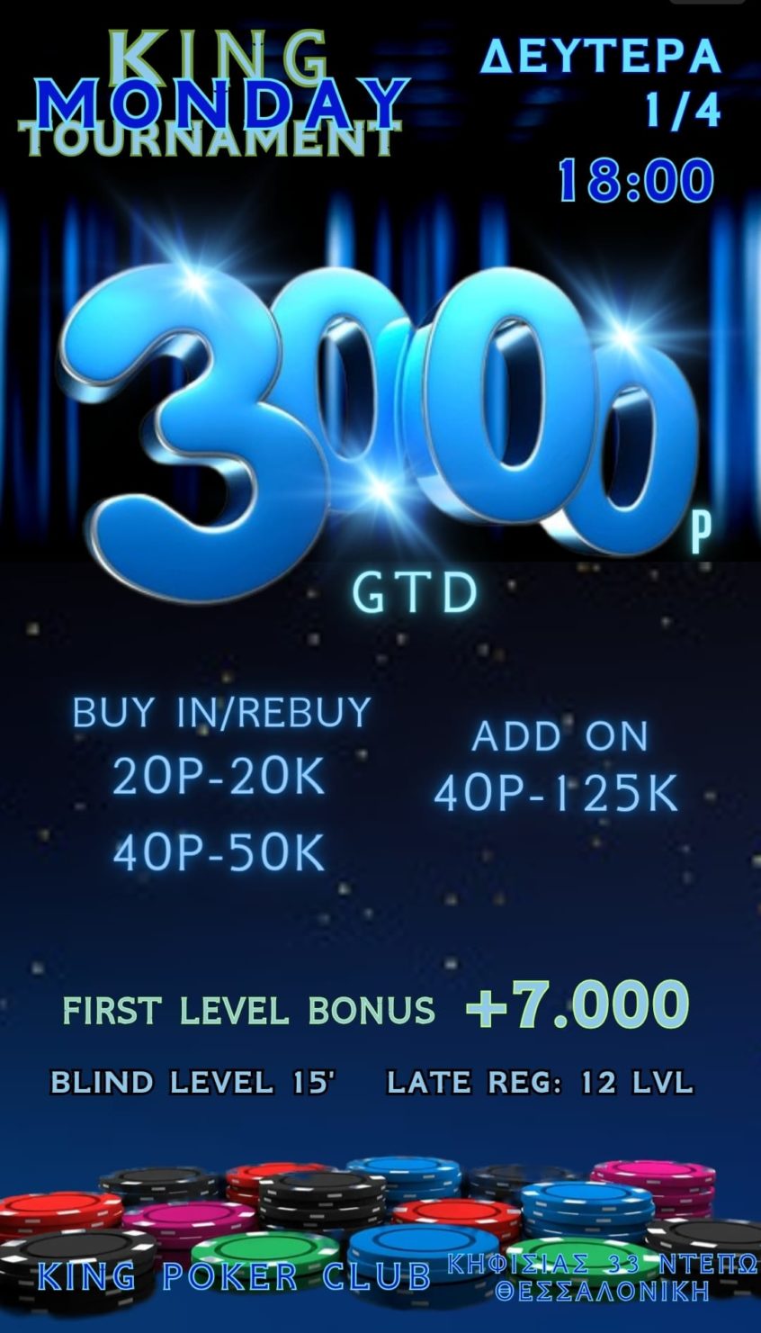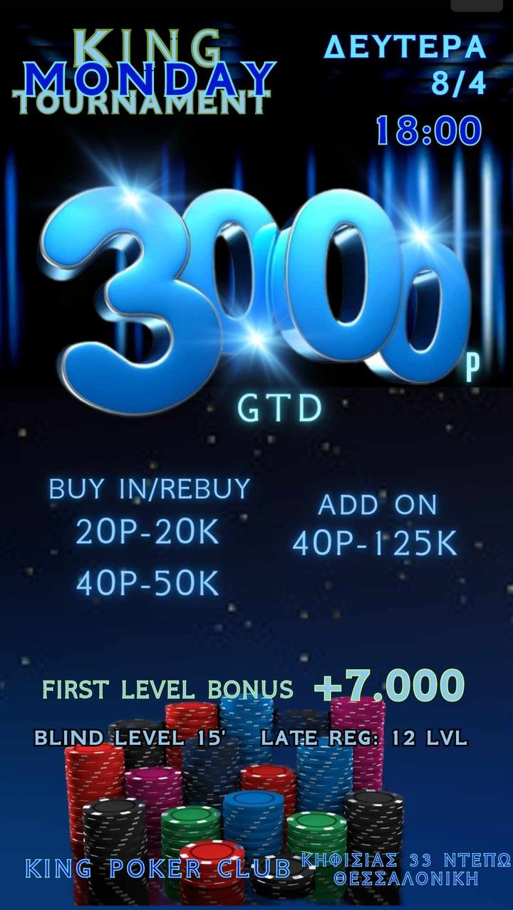 King: Στις 18:00 το 20p NLHE με 3.000p gtd