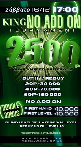 King: Στις 17:00 το No Addon με 2.500p gtd και πρεμιέρα για one time reveal card!