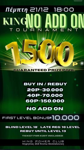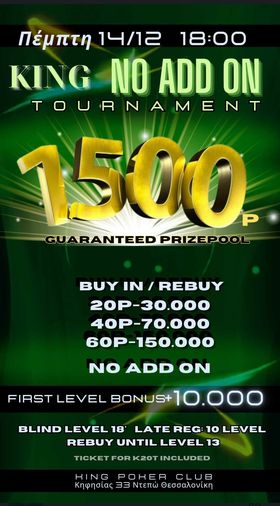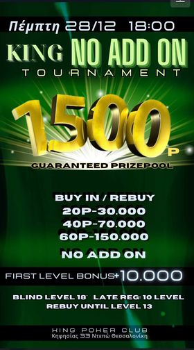 King: Δύο deals χθες, No addon απόψε με 1.500p gtd