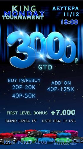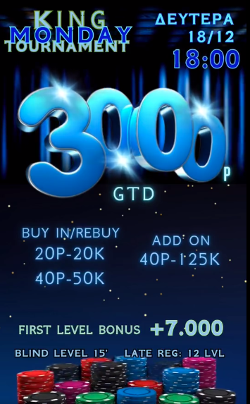 King: Στις 18:00 το 20p NLHE με 3.000p gtd
