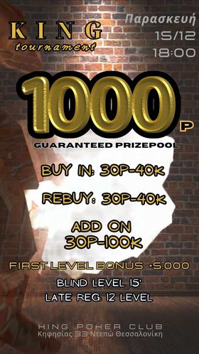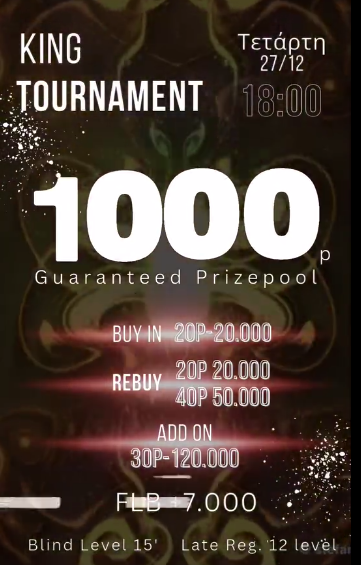 King: Ηeads-up deal χθες, 30p NLHE με 1.000p gtd στις 18:00
