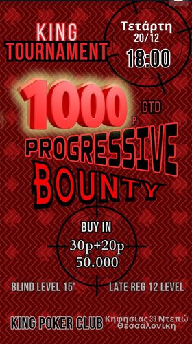 King: Στις 18:00 το 50p NLHE Progressive Bounty