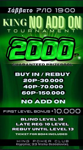 Κing: Στις 18:00 το 20p NLHE με 1.000p gtd
