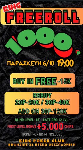 Κing: Το 1-2 Billakis-GP44, freeroll satellite με 1.000p gtd στις 18:00