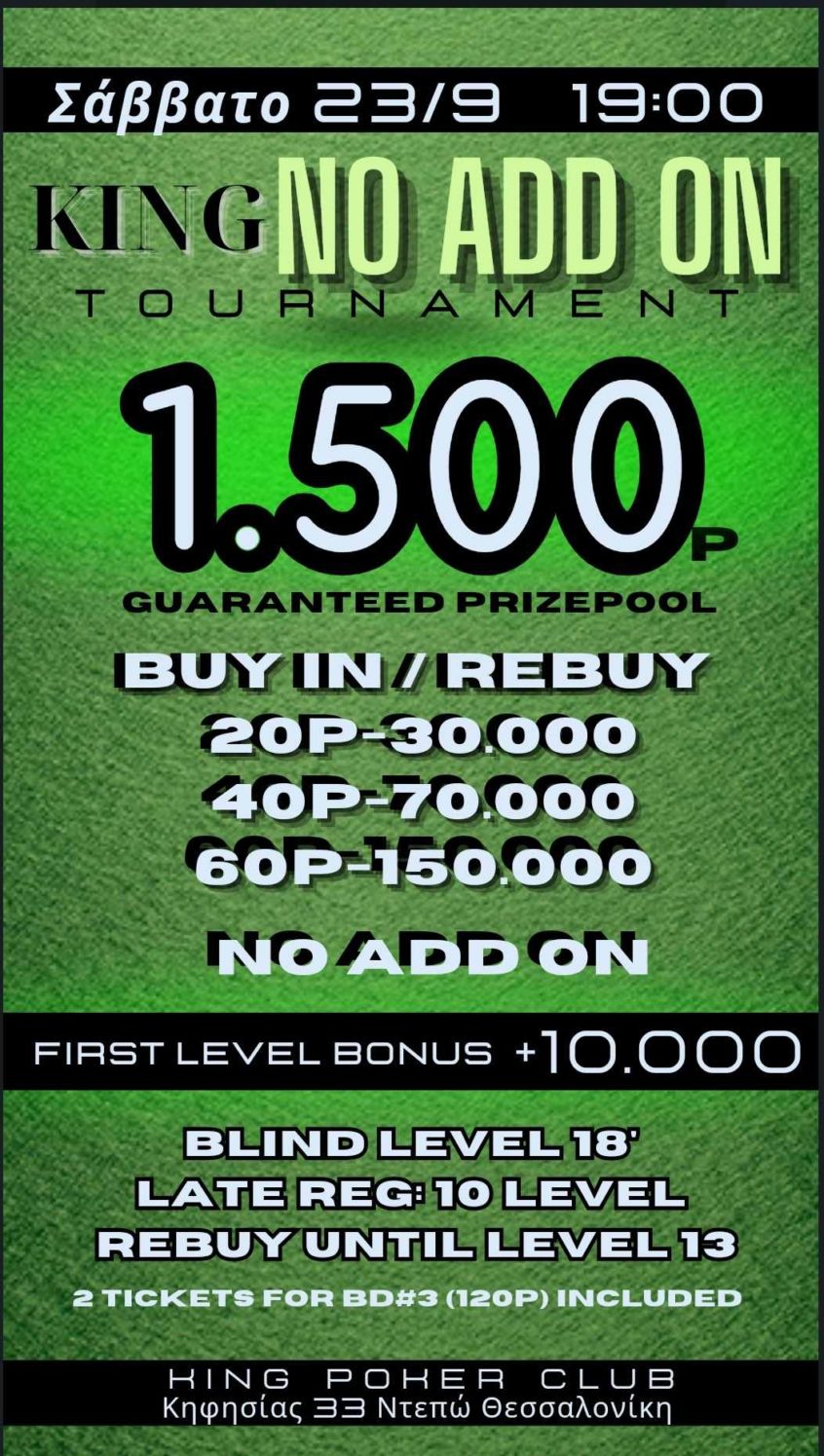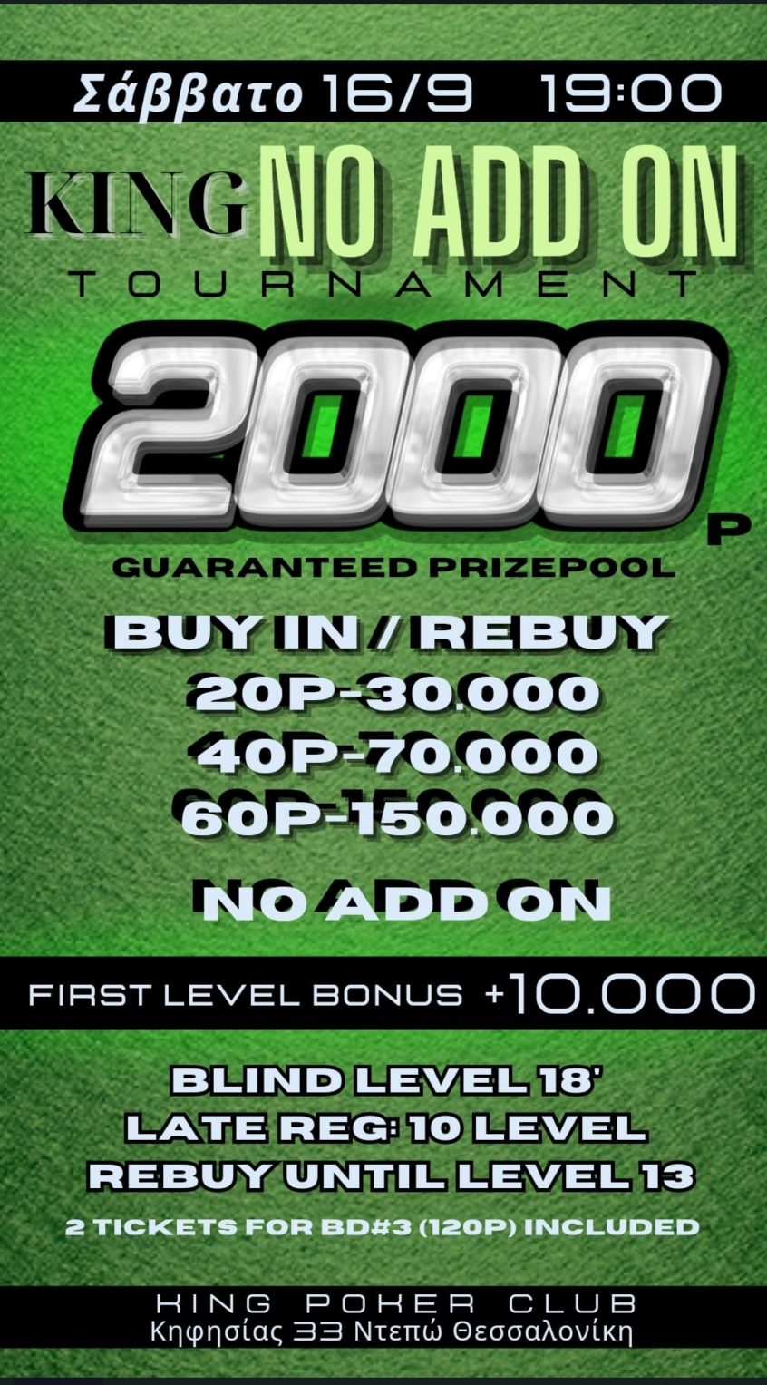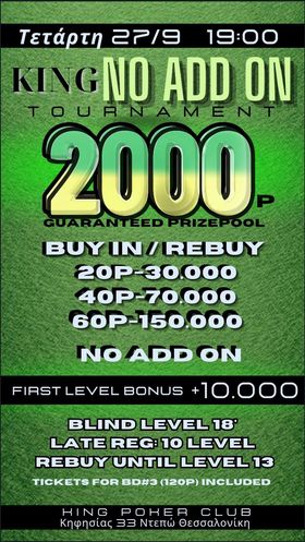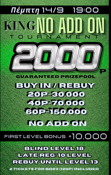 Κing: Στις 19:00 το No Addon με 2.000p gtd + ring games