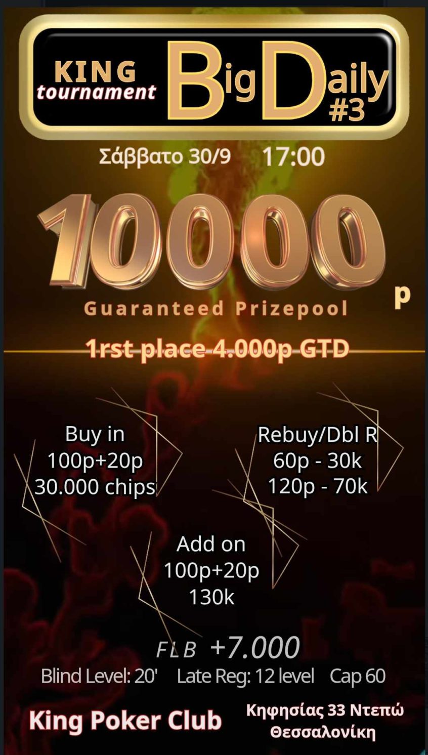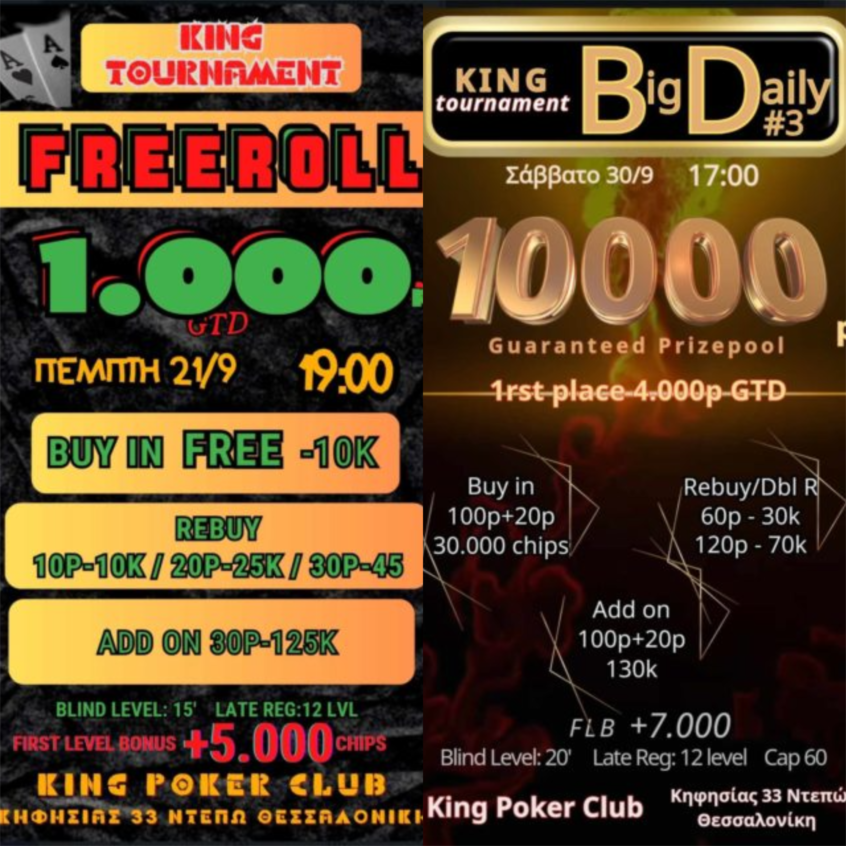 King: Heads-up deal χθες, freeroll sat (1.000p gtd) για το Big Daily #3 (10.000p gtd)
