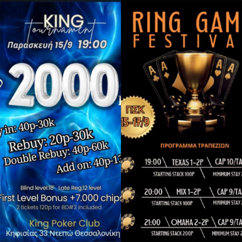 King: Ξεκινάει το ring games festival, 40p NLHE με 2.000p gtd στις 19:00
