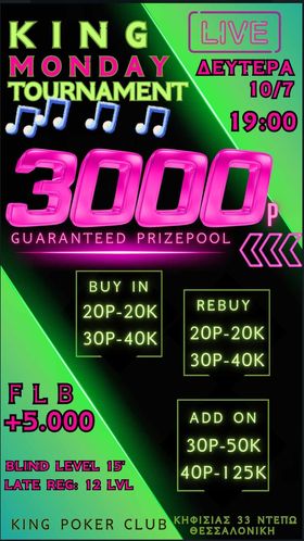 King: Στις 19:00 το 20p R/A NLHE με 3.000p gtd!