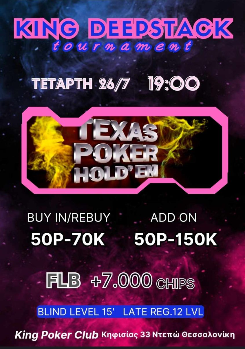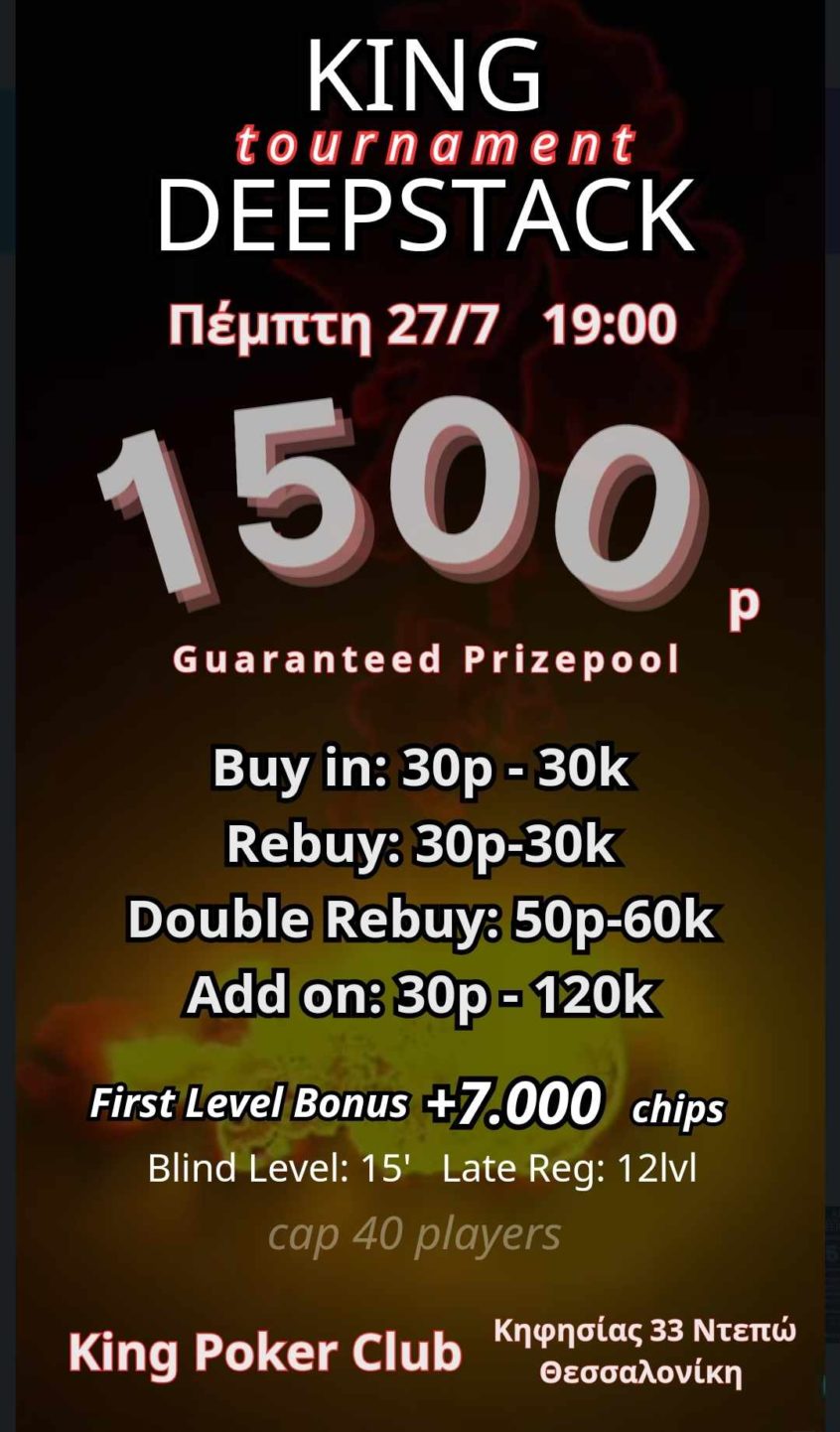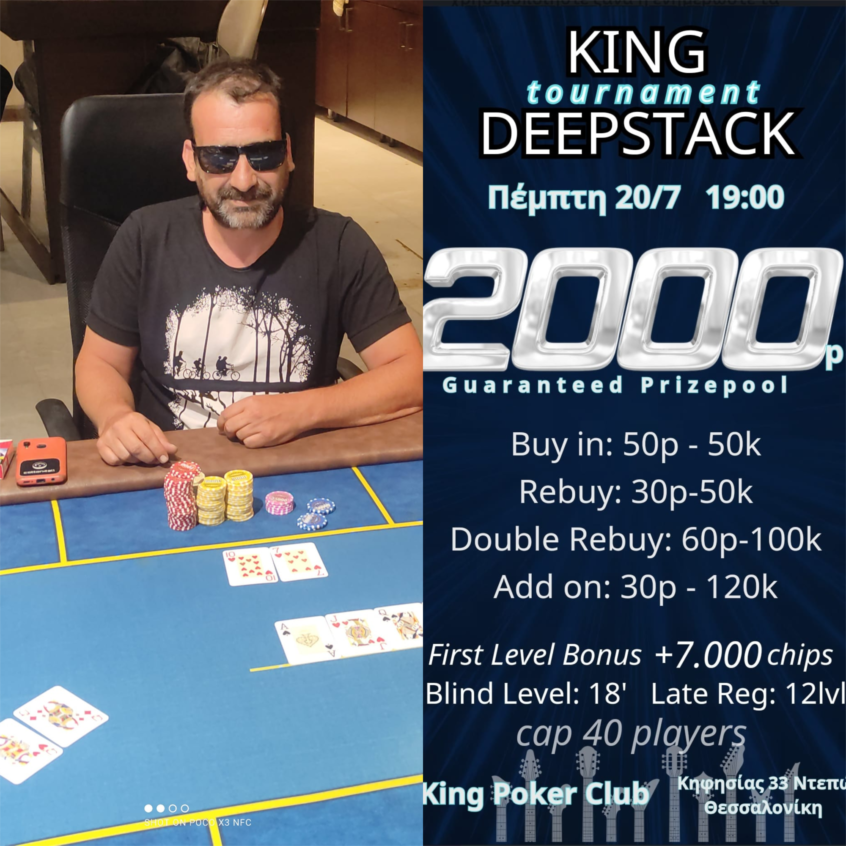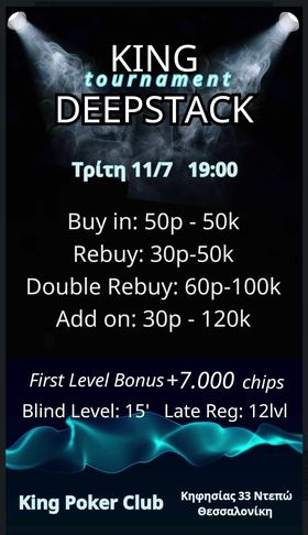 King: 4-way deal χθες, 50p Deepstack με 2.000p gtd στις 19:00