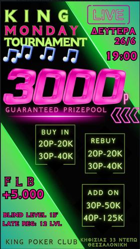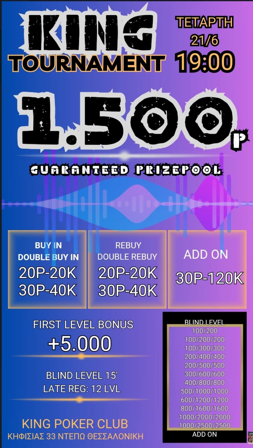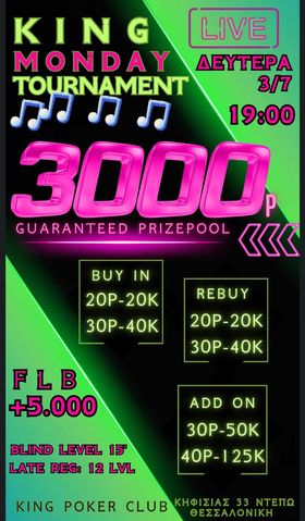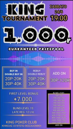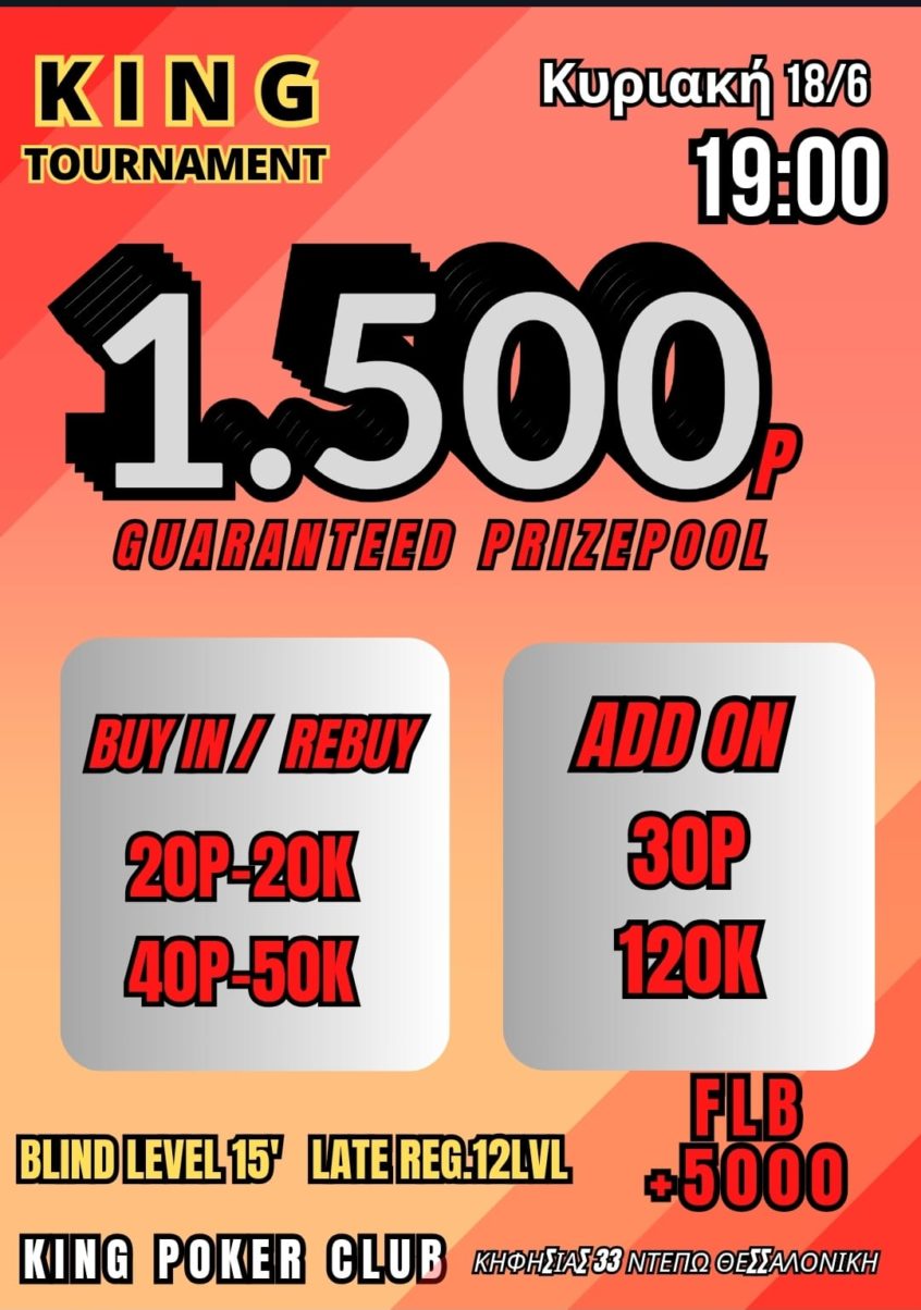 Κing: 1.700p χθες, στις 19:00 το 30p NLHE με 1.000p gtd