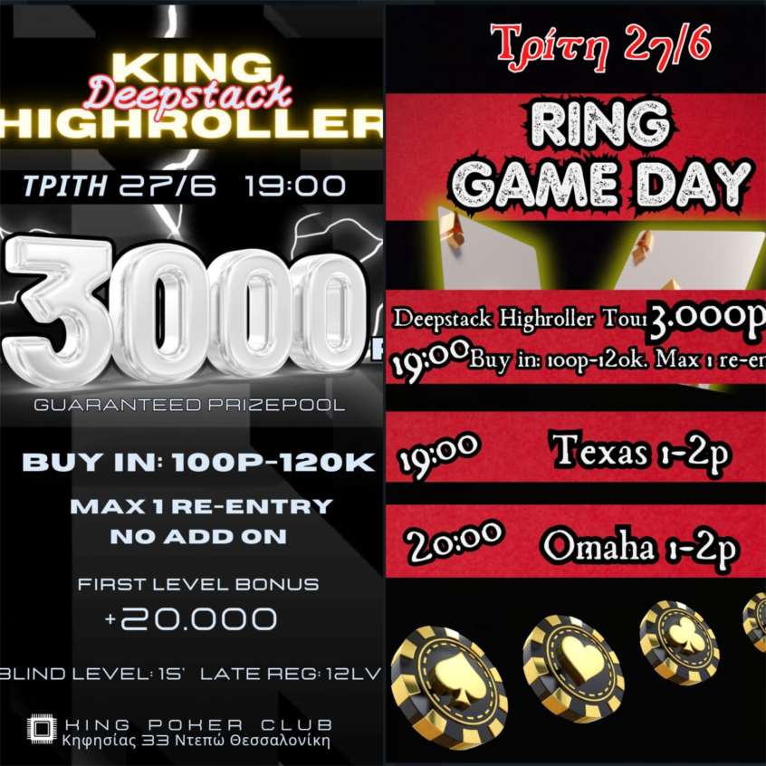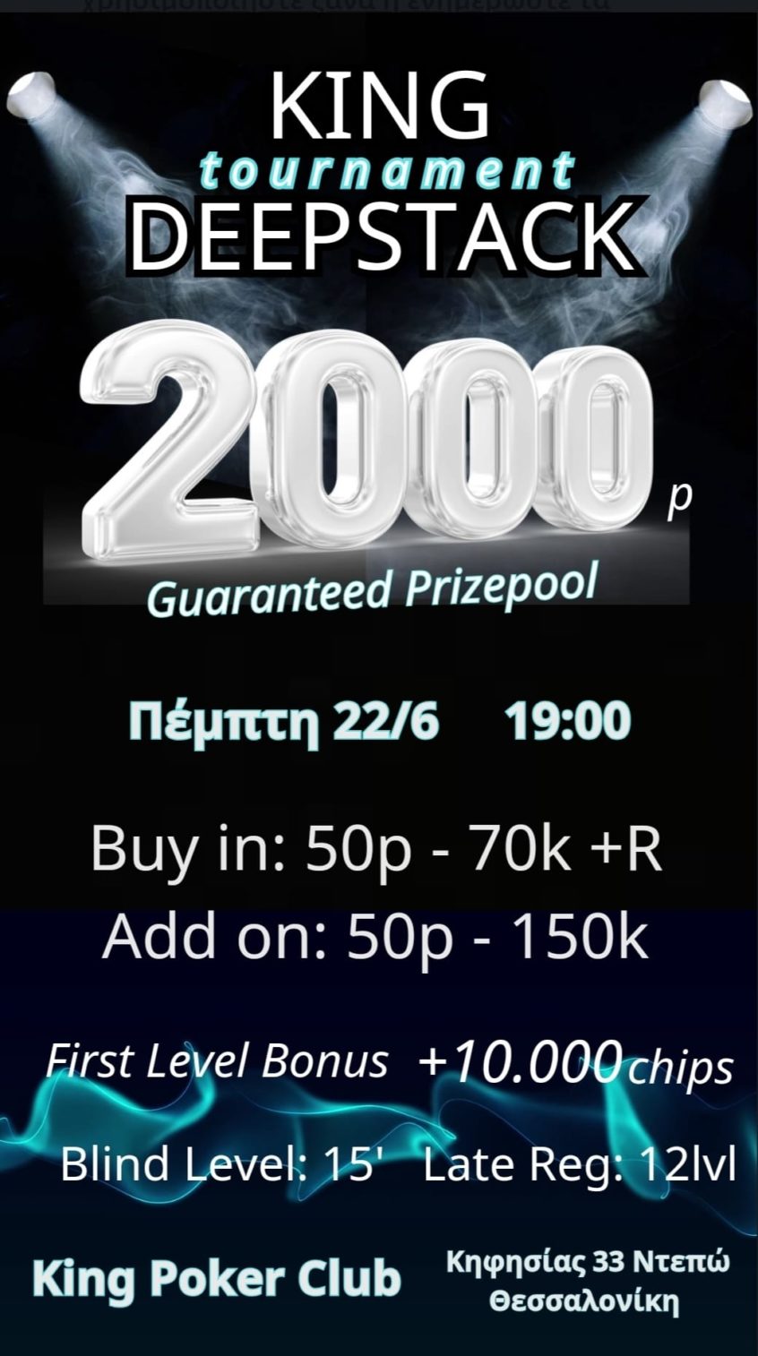 King: 3.548p χθες, στις 19:00 το 100p Deepstack (3.000p gtd) + ring games