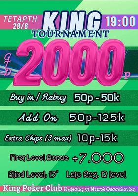 Κing: 2.000p χθες, στις 19:00 το 20p NLHE (1.500p gtd) και ring games