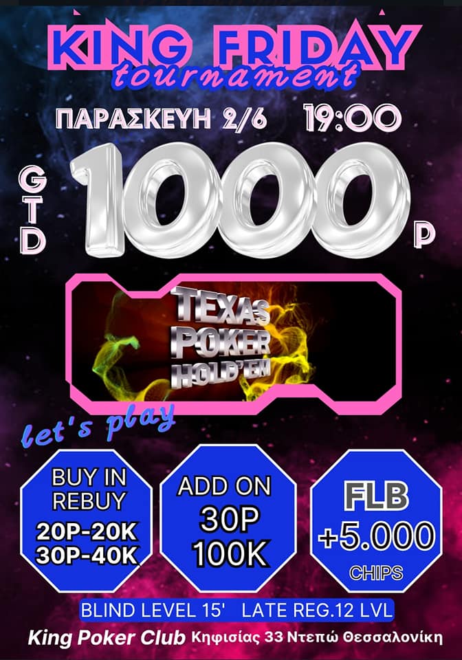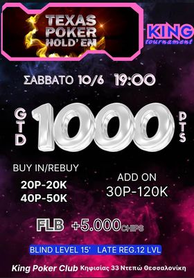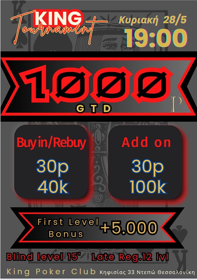 King: Στις 19:00 το 30p R/A NLHE με 1.000p gtd