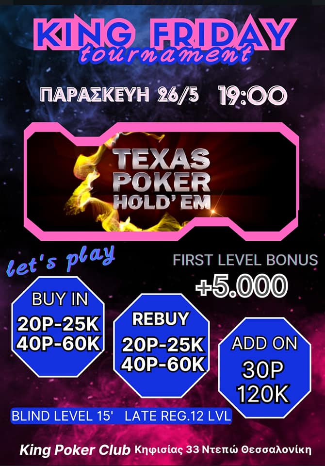 King: Κορυφή ο Tomis, 20p NLHE με 1.000p gtd και Texas/PLO games