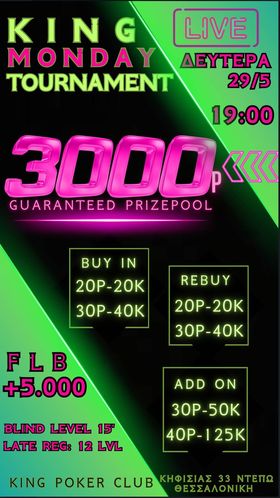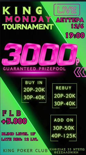 King: Στις 19:00 το 20p R/A NLHE με 3.000p gtd