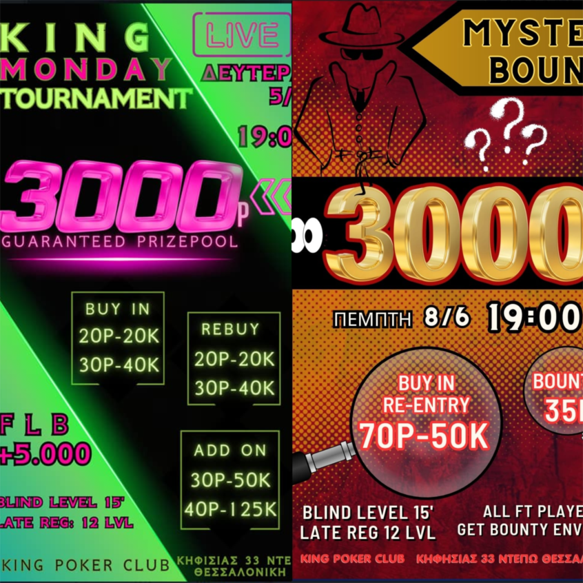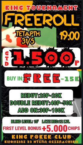 Κing: 4.430p χθες, 20p NLHE με 1.000p gtd στις 19:00