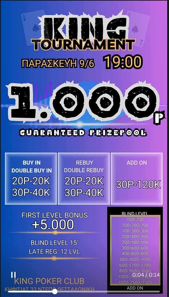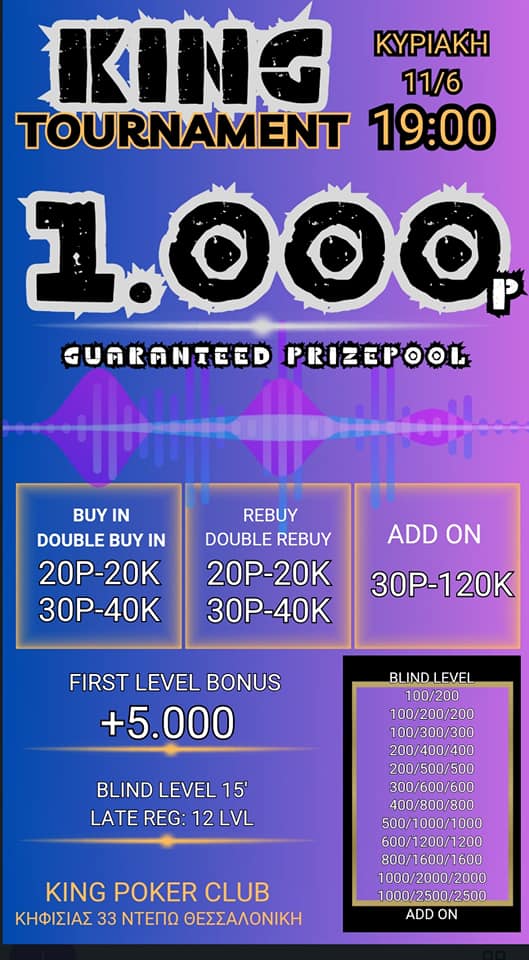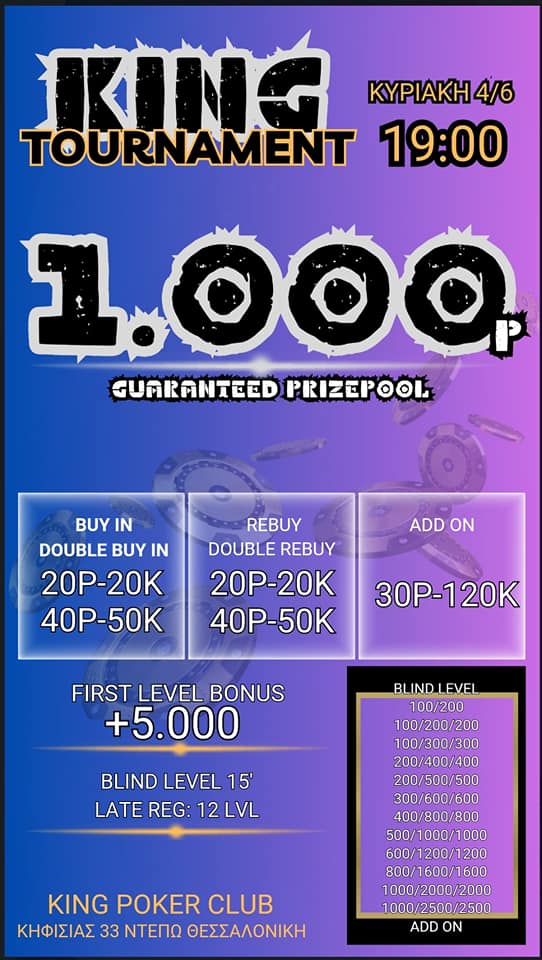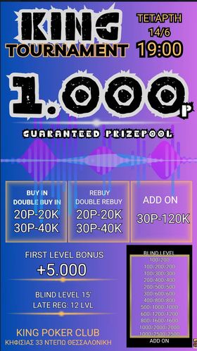 Κing: Στις 19:00 το 20p R/A NLHE με 1.000p gtd