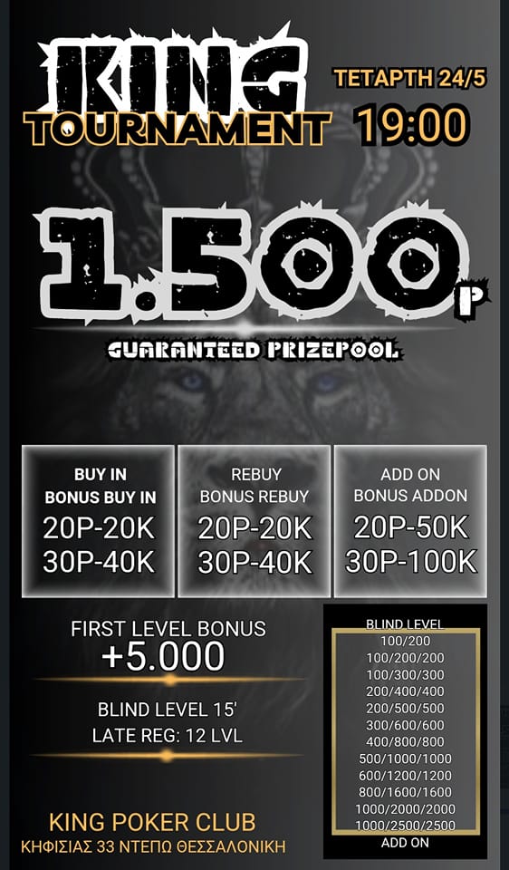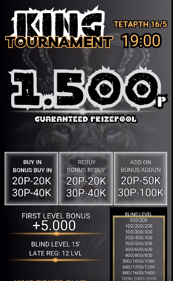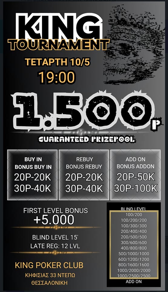 King: Στις 19:00 το 20p R/A NLHE με 1.500p gtd