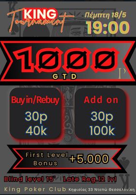 King: Στις 19:00 το 30p R/A NLHE με 1.000p gtd