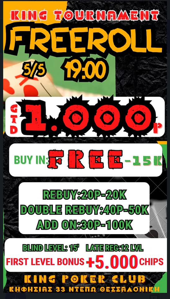 King: Freeroll με 1.000p gtd στις 19:00 και ring games