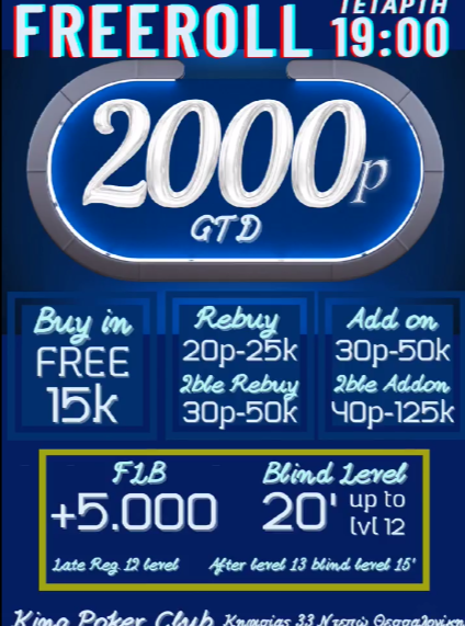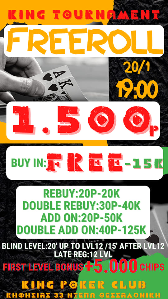 King: Freeroll στις 19:00 με 2.000p gtd
