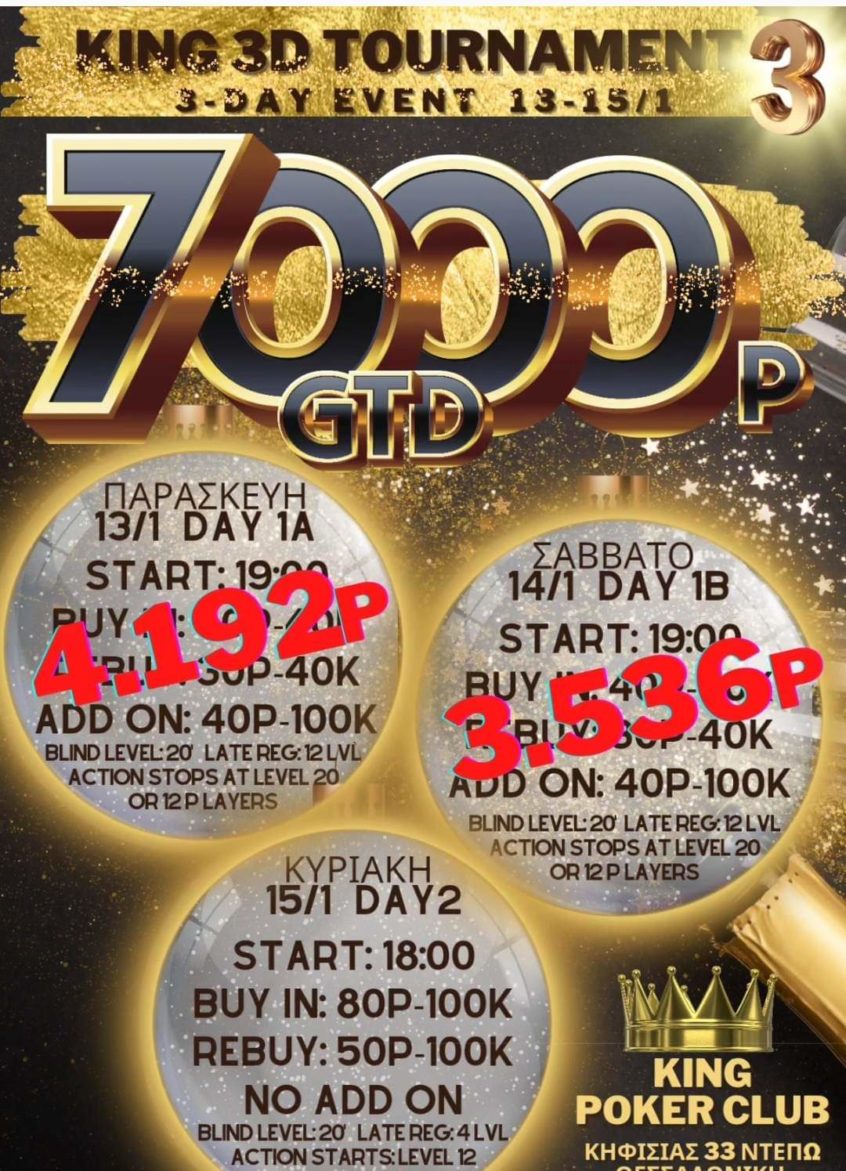 King: 1.840p χθες, στις 19:00 η Day 1a του 3D (7.000p gtd)