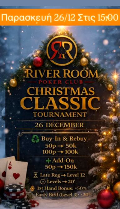 To River room poker club της Λάρισας βάζει τα γιορτινά και σας … Read More