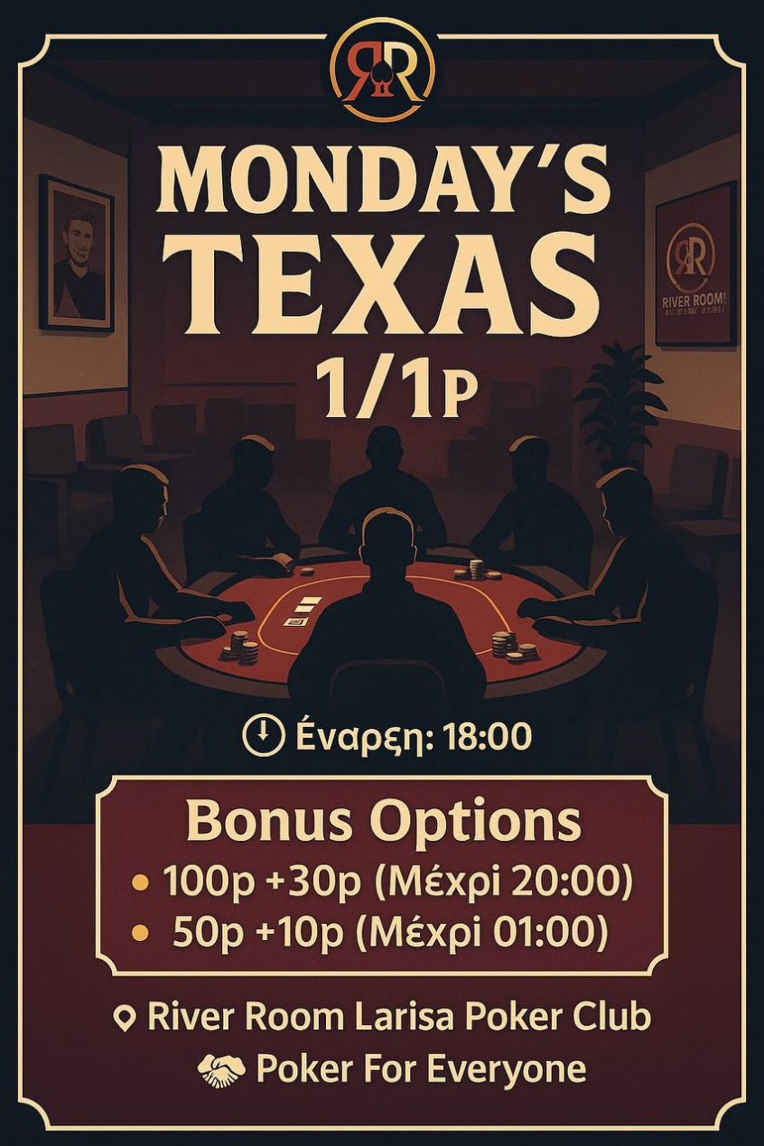 Η εβδομάδα ξεκινά δυναμικά στο River room poker club της Λάρισας! Κάθε … Read More