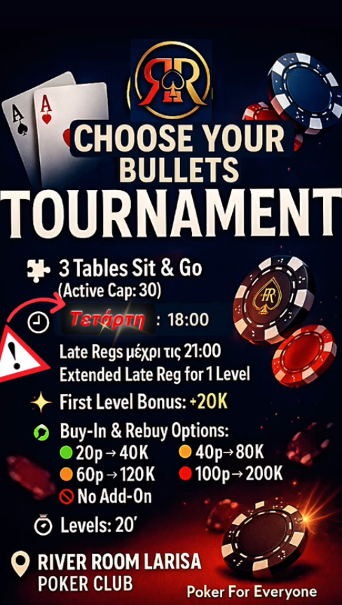 Λάρισα: Sit & go και ring games απόψε στο River room