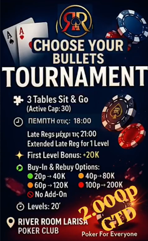 Λάρισα: Choose your bullets στις 18:00 με 2.000p gtd!