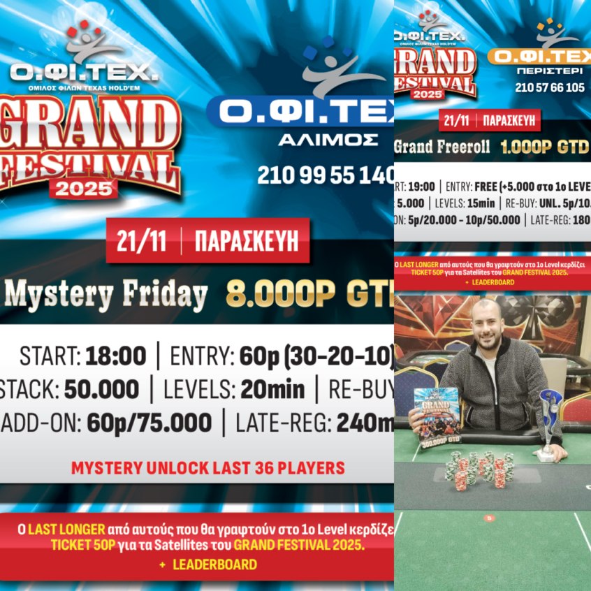 Ο.ΦΙ.ΤΕΧ.: Deal στη Mystery Friday, double prize pool (8.000p gtd) στο Μαρούσι