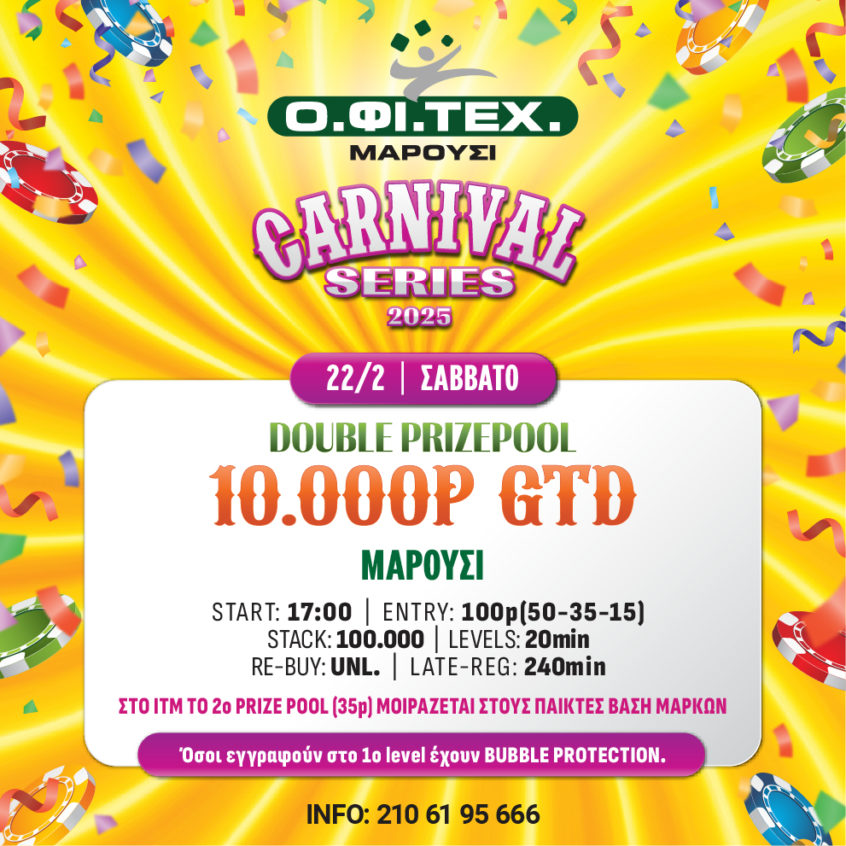 Ο.ΦΙ.ΤΕΧ.: Φινάλε στην Carnival Series με θρίαμβο Καραγιάννη για 9.000p!