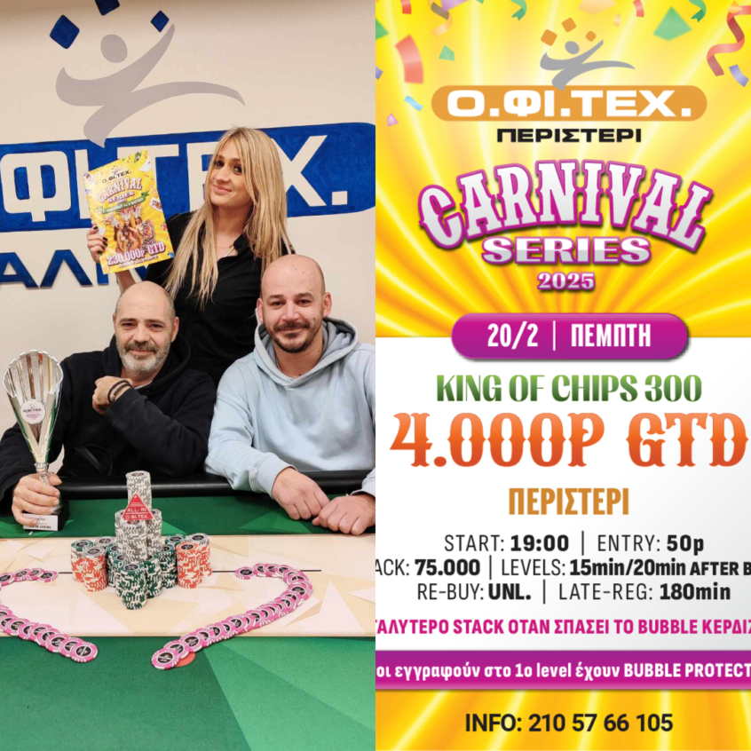 O.ΦΙ.ΤΕΧ.: Το 1-2 Δήμας-Δημητριάδης, Κing of chips (4.000p gtd) στο Περιστέρι