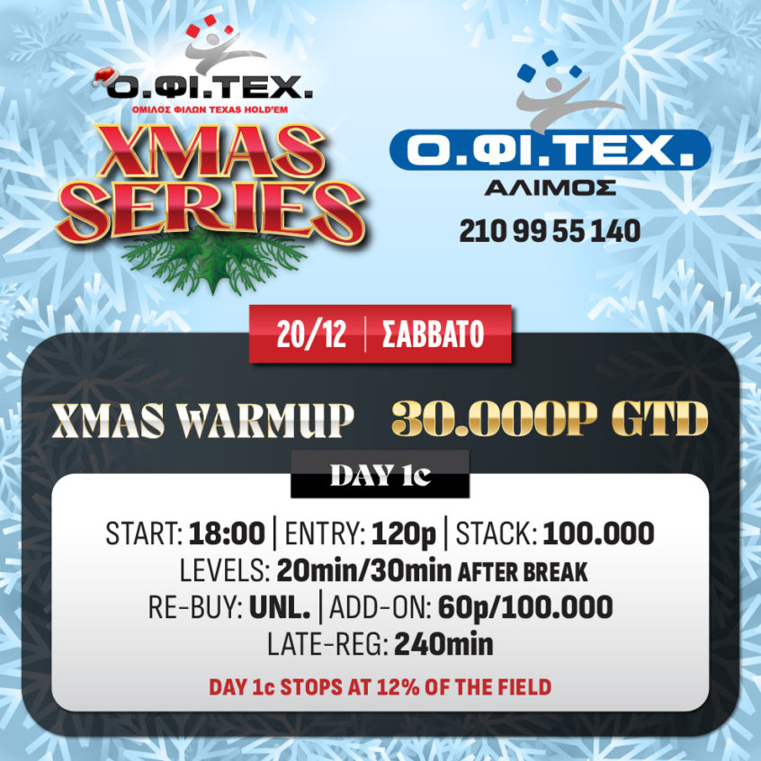 O.ΦΙ.ΤΕΧ.: Heads-up deal στο Warm-Up, δύο Xmas events απόψε με 10k gtd