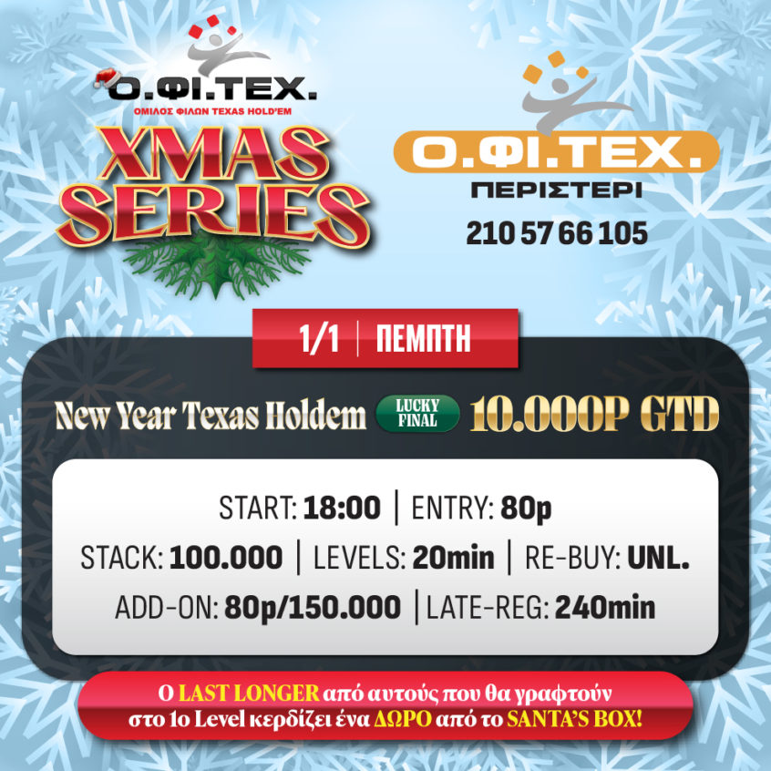 O.ΦΙ.ΤΕΧ.: Πρωτοχρονιά με New Year Texas Hold’em και 10.000p gtd