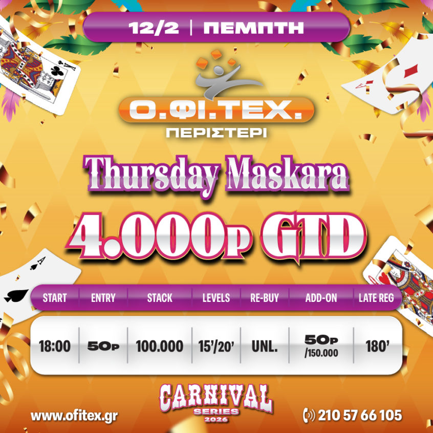 Ο.ΦΙ.ΤΕΧ.: Τσικνοπέμπτη με Thursday Maskara και 4.000p gtd!