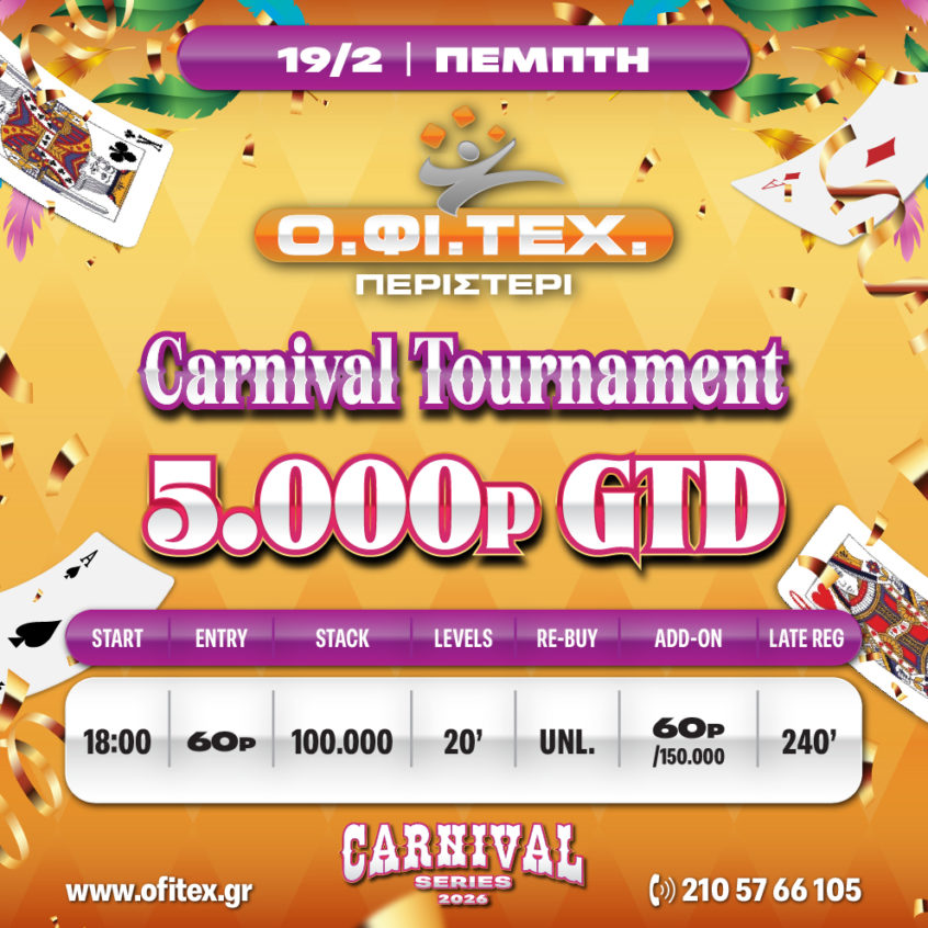 O.ΦΙ.ΤΕΧ.: Deal για έξι στο Opener, King of Carnival με 6.000p gtd!