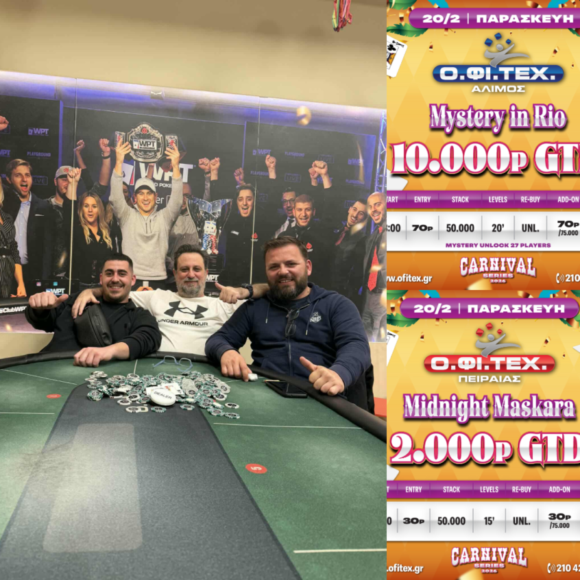 Σ” ένα field 73 παικτών στο Carnival Texas Mystery του Περιστερίου ξεχώρισαν … Read More