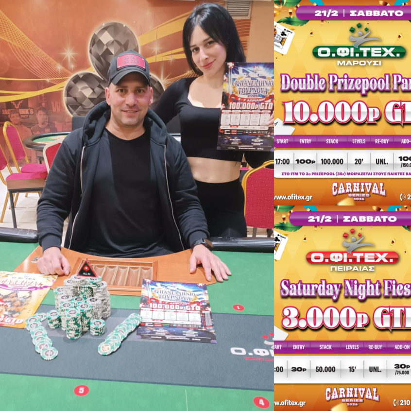 Ο.ΦΙ.ΤΕΧ.: Nικητής του high roller o souramaliki, Mystery με 7.000p gtd στο Περιστέρι