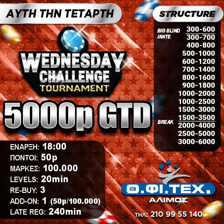 O.ΦΙ.ΤΕΧ.: Τετάρτη με freerolls και Challenge (5.000p gtd)