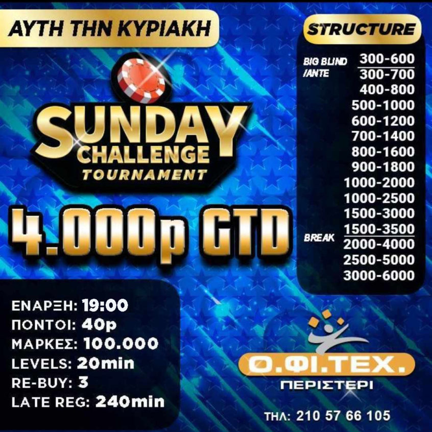 O.ΦΙ.ΤΕΧ.: Στις 19:00 το Sunday Challenge με 4.000p gtd