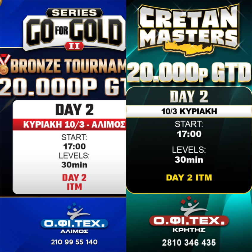 Ο.ΦΙ.ΤΕΧ.: Με 28 παίκτες η Day 2 στο Bronze, με 20 το Cretan Masters