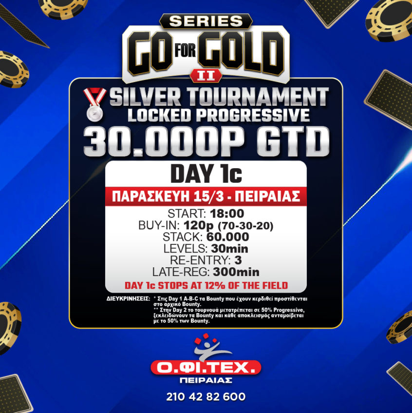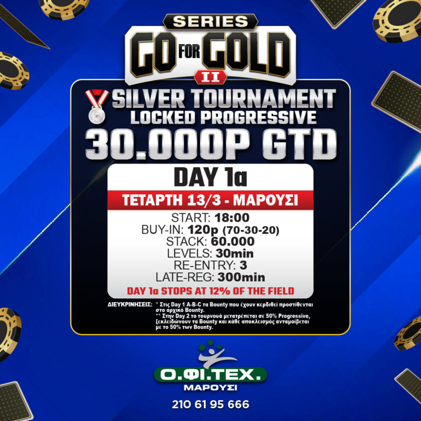 Ο.ΦΙ.ΤΕΧ.: Στις 18:00 η Day 1a του Silver Progressive (30.000p gtd)