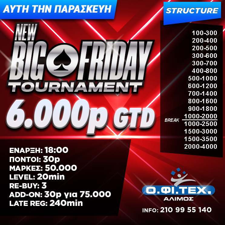 Ο.ΦΙ.ΤΕΧ.: Big Friday με 10.000p gtd απόψε!